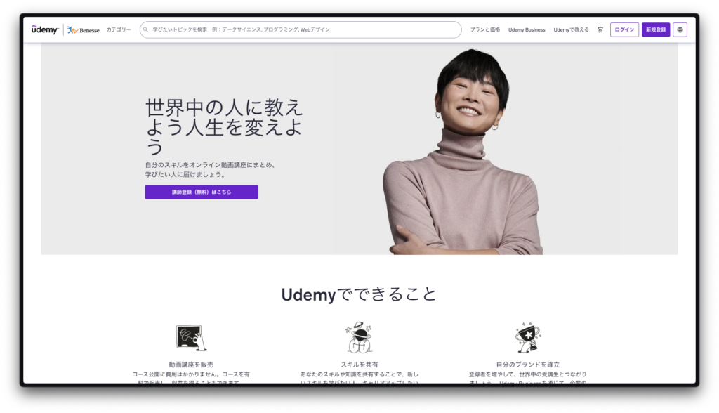 まだ登録していない方は、この記事を開いたまま、今すぐUdemyのサイトにアクセスして登録を済ませてしまいましょう。5分後には、あなたもUdemy講師です。