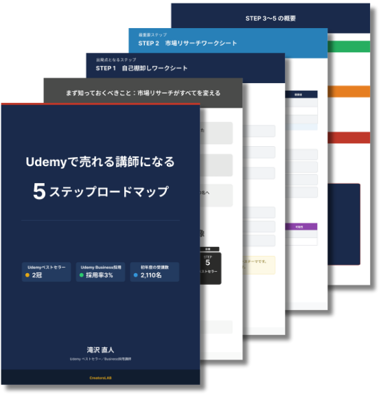 このロードマップは「これからUdemy講師を始めたい方」向けに作りました。テンプレートを使えばカリキュラムの設計も難しくありません。